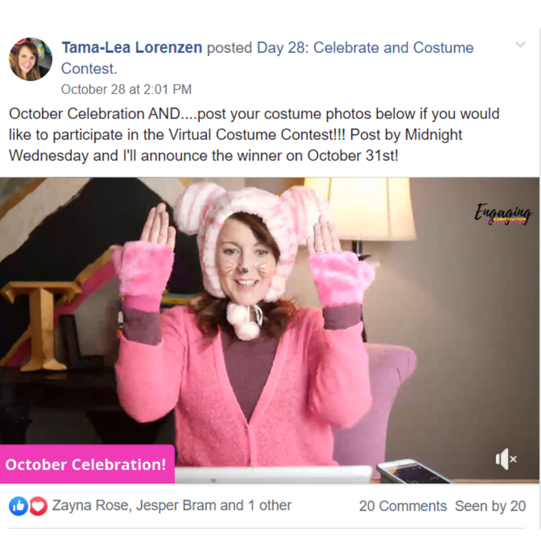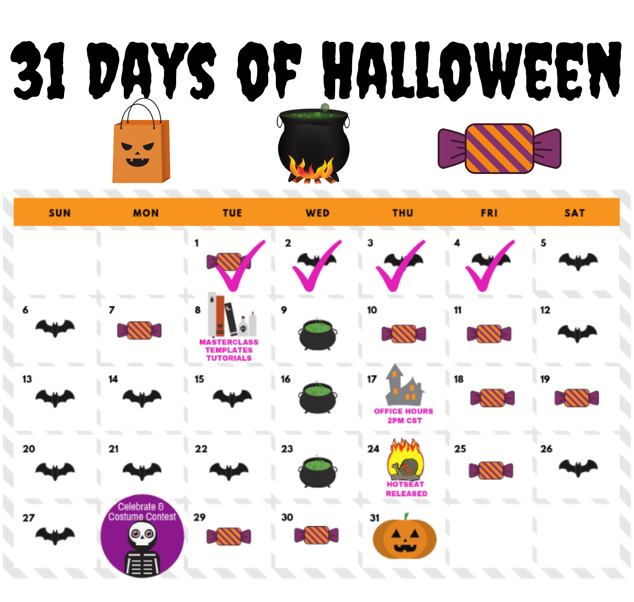 Free T-shirts, Buddy Bingo, Virtual Costume Contests, 31 Days of Halloween, Bonus Trainings, Creating a Challenge That Converts, and SO MUCH MORE!