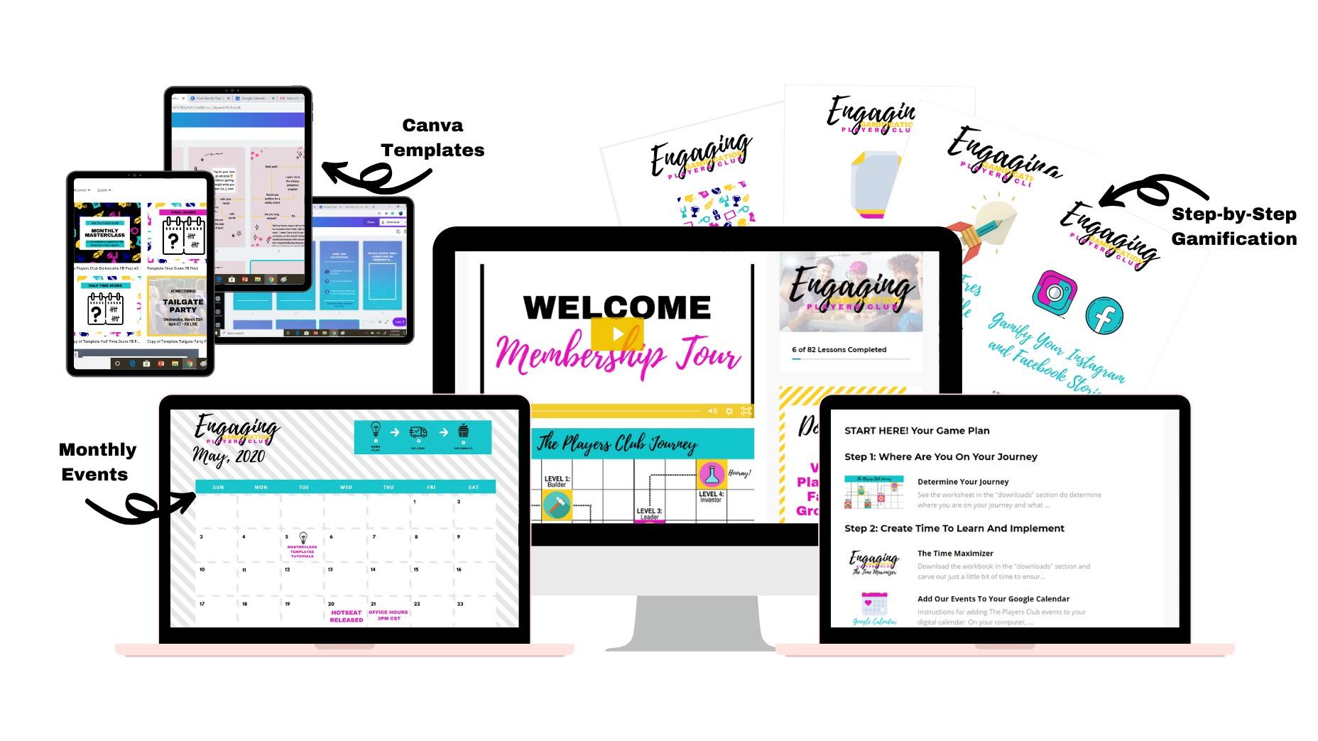When you join The Players Club you get immediate access to all the entire catalog of bonuses. This includes 101 Plug & Play Engaging Gamification Ideas, Think-Do-Be A Successful Entrepreneur Workshop, The Engaging Gamification Audit, Three Myths About Online Courses Mini-Course, and MORE...